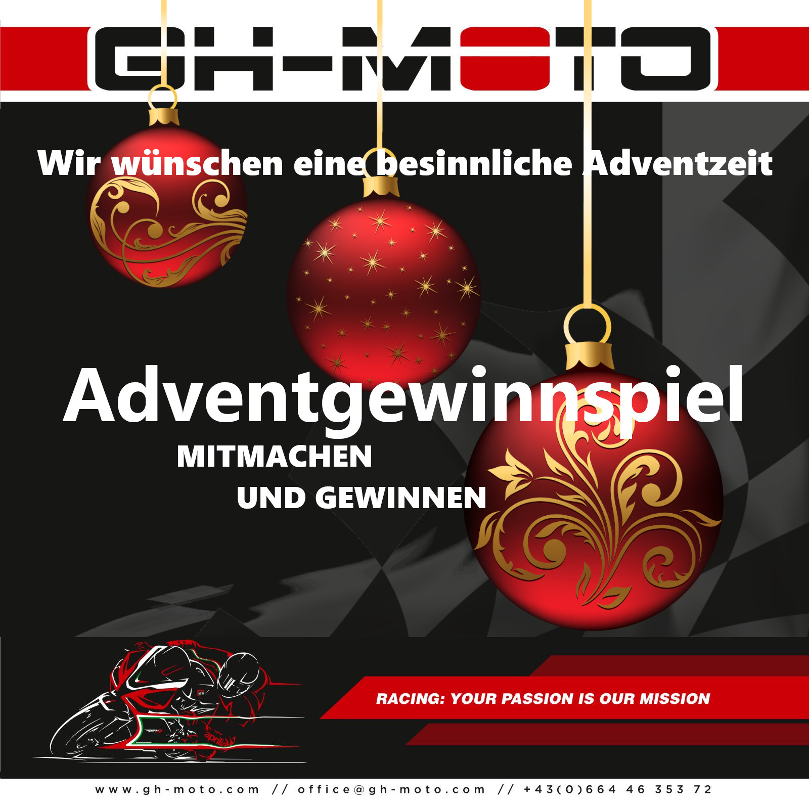 Eine ruhige, schöne Adventzeit trotz dieser schwierigen Lockdownzeit wünscht euch das GH-MOTO Team